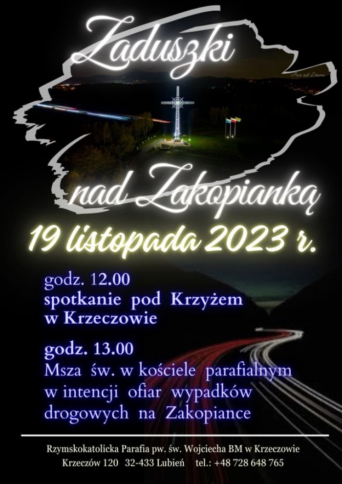 Światowy Dzień Pamięci o Ofiarach Wypadków Drogowych, który przypada w tym roku na 19 listopada jest poświęcony pamięci wielu milionów zabitych oraz poszkodowanych w wypadkach drogowych, ich rodzinom, bliskim a także najbliższemu otoczeniu. Hołd w tym dniu oddawany jest również zespołom ratunkowym, które niosą pomoc przy tego typu wypadkach.- Chcemy uczcić pamięć ofiar wypadków drogowych na zakopiance. W połowie drogi pomiędzy Krakowem a Zakopanem, przy Krzyżu w Krzeczowie w niedzielę 19 listopada o godzinie 12:00 odbędą się „Zaduszki nad zakopianką”, spotkanie poświęcone wszystkim ofiarom wypadków drogowych na tym odcinku trasy S7. Zwracamy się z prośbą o zgłaszanie osób, które zginęły w wypadkach drogowych na zakopiance za pomocą formularza znajdującego się na naszej stronie internetowej - mówi ks. Albert Wołkiewicz, proboszcz Rzymskokatolickiej Parafii pw. św. Wojciecha BM w Krzeczowie, na terenie której znajduje się Krzyż.