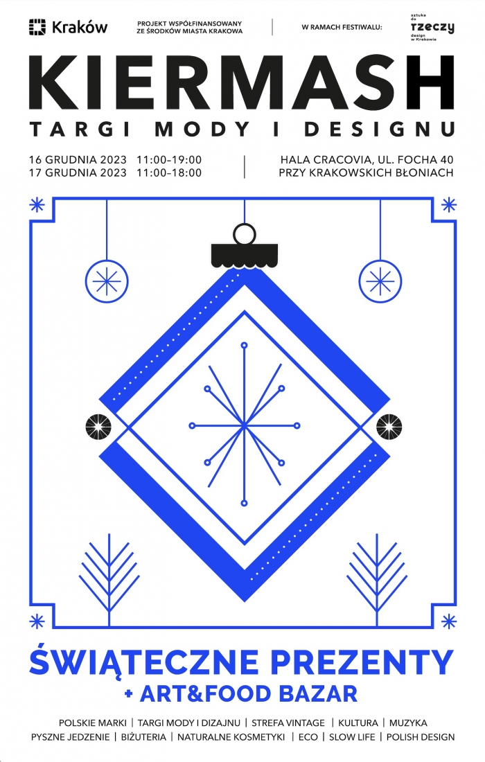 Co roku w grudniu przez dwa dni lokalne, małopolskie manufaktury oferują kawałek swojej całorocznej pracy, by móc spełnić świąteczne marzenia i zaopatrzyć gości w naprawdę oryginalne prezenty. Mowa oczywiście o KIERMASHu, czyli doskonale znanych wszystkim, małopolskich targach mody niezależnej i designu użytkowego.16 i 17 grudnia w Hali 100-lecia KS Cracovii przy krakowskich Błoniach spotkać będzie można znane, niszowe polskie marki prezentujące ubrania, gadżety, akcesoria, kosmetyki i całą moc pomysłów na upominki - od choinkowych ozdób, przez zimowe smakołyki, biżuterię i tradycyjne skarpety. Organizatorzy zapewniają, że jak co roku, tak i teraz nie zabraknie bożonarodzeniowego klimatu i… dekoracji.
