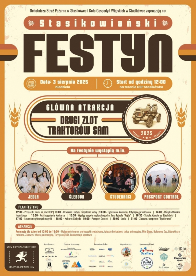 W Stasokówce odbędzie się Festyn Stasikowiański, którego głowną atrakcją będzie II Zlot Traktorów SAM.W samo południe uczetnicy przejadą na plac pod remizą OSP, gdzie o godzinie 13-tej impreza zostanie oficjalnie otwarta. Popołudniu na scenie zobaczymy kabaret Śleboda, wsytąpą zespóły Passport Control i Jedla a na koniec do tańca zagrają Studeranci.