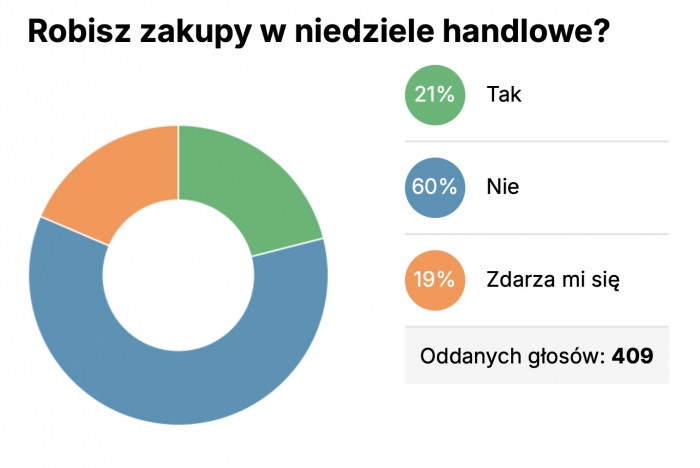 Portal podhale24.pl zapytał swoich Czytelników, czy robią zakupy w niedzielę. Okazuje sie, że lata obowiązywania zakazu mocno wpłynęły na nasze zakupowe przyzwyczajenia. Niedziela w galerii handlowej - bez której wielu dekadę temu nie wyobrażoało sobie życia dziś nie jest już ztrakcyjna, nawet wtedy, gdy jest możliwa. 6 na 10 ankietowanych przez podhale24.pl twierdzi, że nie robi zakupów w niedzielę.